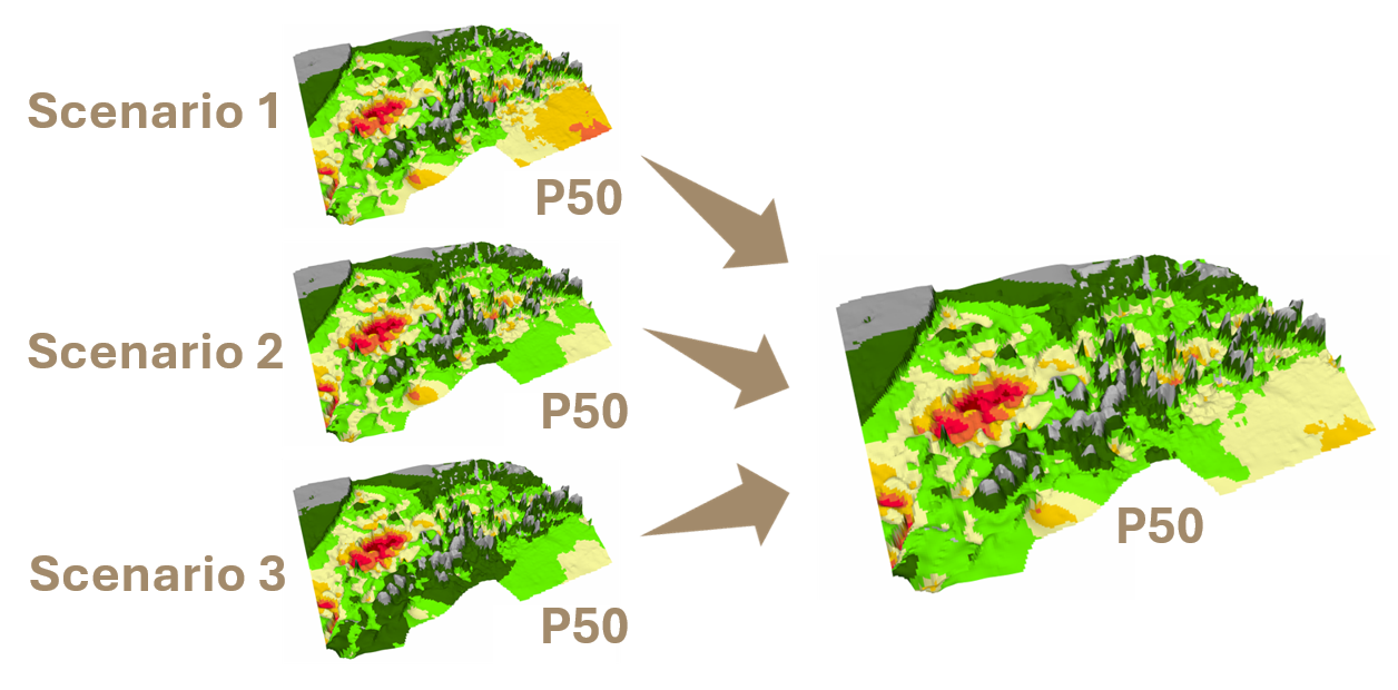 It allows the uncertainty analysis to be done while considering any number of conceptual models.The results of multi-response surfaces can be combined with a user defined weight to produce risk and probability maps.Exploration usage only.