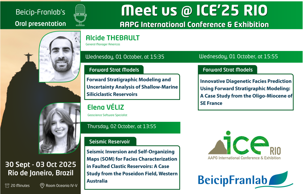 Our specialists Alcide Thebault and Elena V. Véliz will be present at the AAPG International Conference & Exhibition ICE2025, in Rio de Janeiro, Brazil!