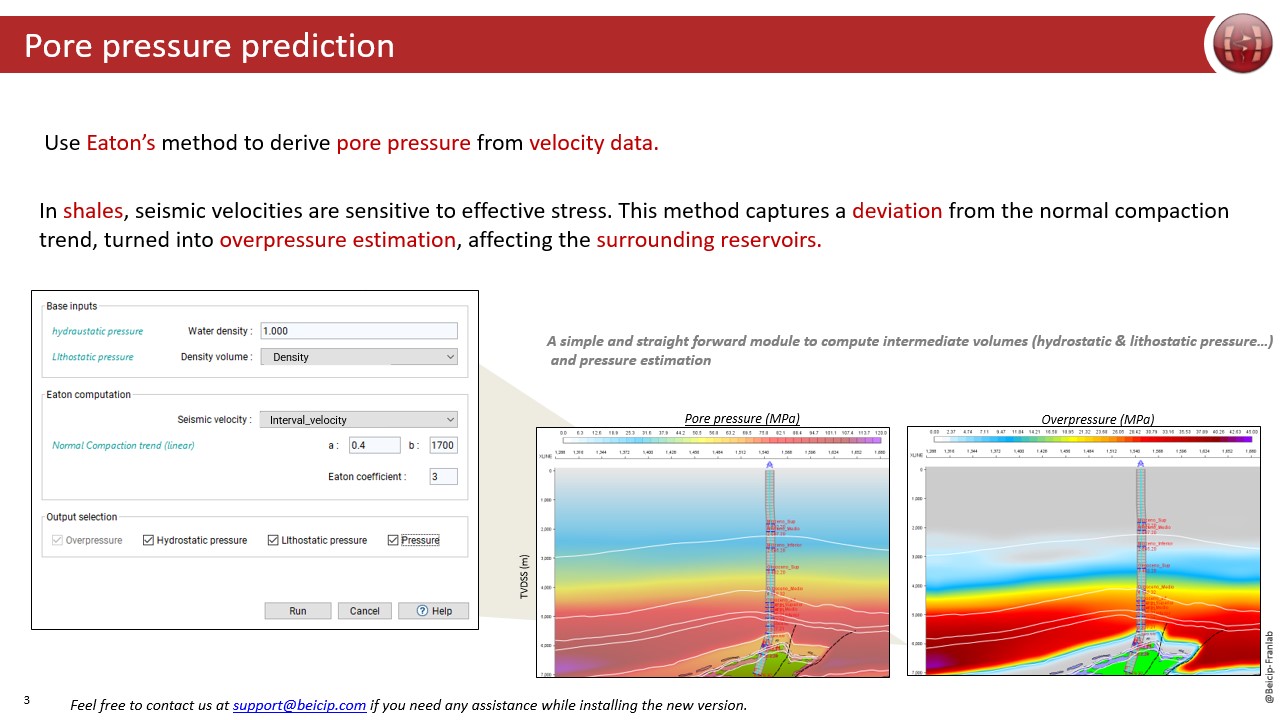 • Pore pressure prediction: estimate pore pressure directly from seismic velocities.