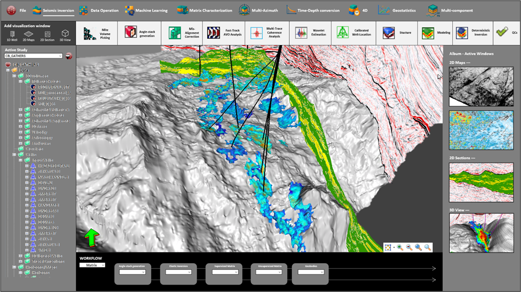 The leading-edge software with comprehensive workflows, to conduct end-to-end geophysical studies, from defining your Rocks physics model, running QC and seismic data conditioning, seismic inversion, to subsurface characterization, and depth conversion.